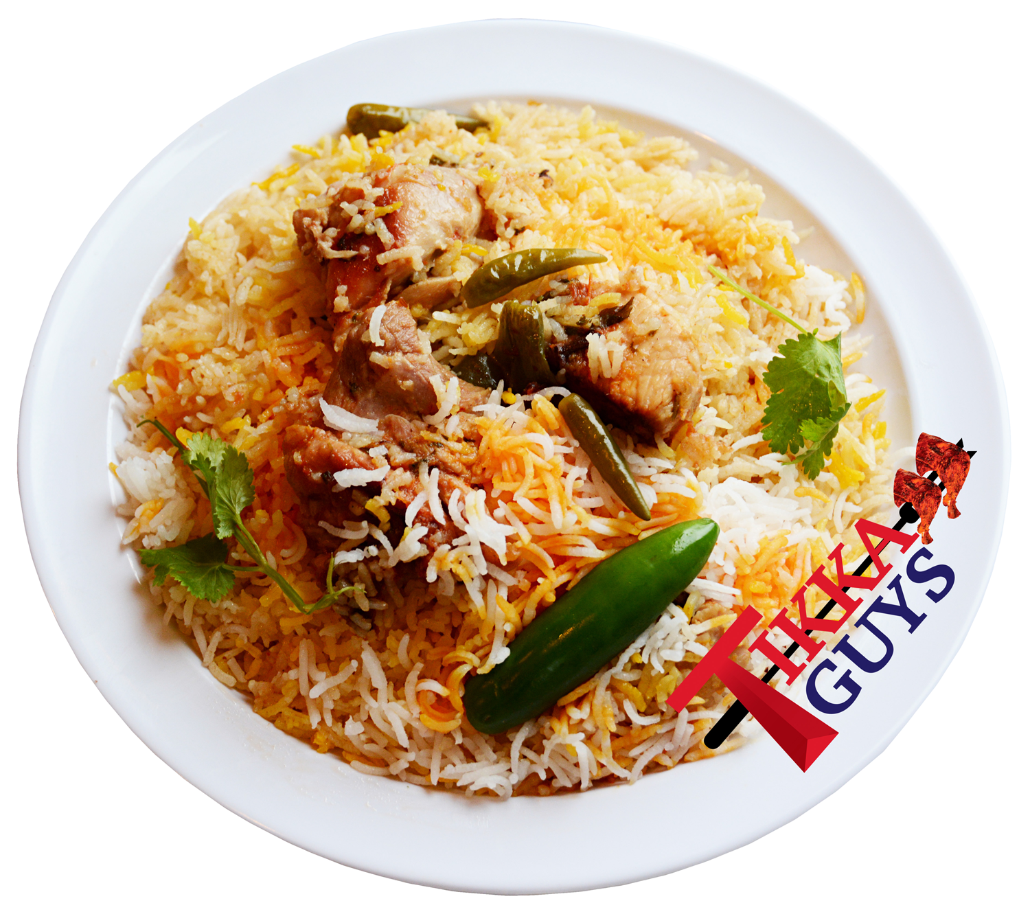 The basmati rice is cooked with the mutton and fragrant spices and topped with jalapenos and cilantro or mint leaves.
